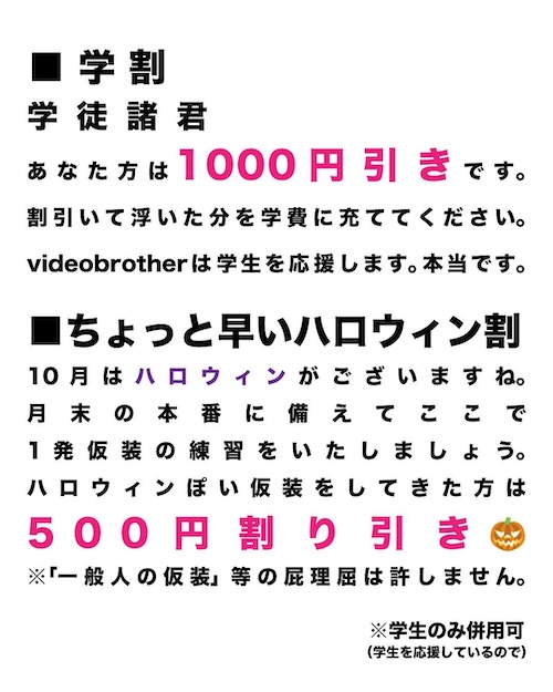 ちょっと早いハロウィン割¥2,500-(+1Drink ¥600-)※コスプレでご来場の方対象