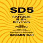 SD5 2022年4月21日 19:00 – 23:00 2022年4月21日(木) SD5 OPEN&START19:00 ADV¥2,000-(+1D) LIVE F.KIYOSHI 掛 優大 Billyrrom DJ muccu