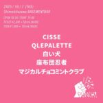 PUNCH! 2025年10月7日 18:30 – 23:00 カテゴリ: weekdays 2025年10月7日(火) ACT CISSE QLEPALETTE 白い犬 座布団忍者 マジカルチョコミントクラブ OPEN18:30/START19:00 TICKET¥2,300-(+1Drink ¥600-) T…