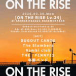 2026年3月30日(月) ACT DUGOUT CANOE The Slumbers Bambi club THE PENNY13 年齢バンド OPEN18:00/START18:30 ADV¥2,400-/DOOR¥…