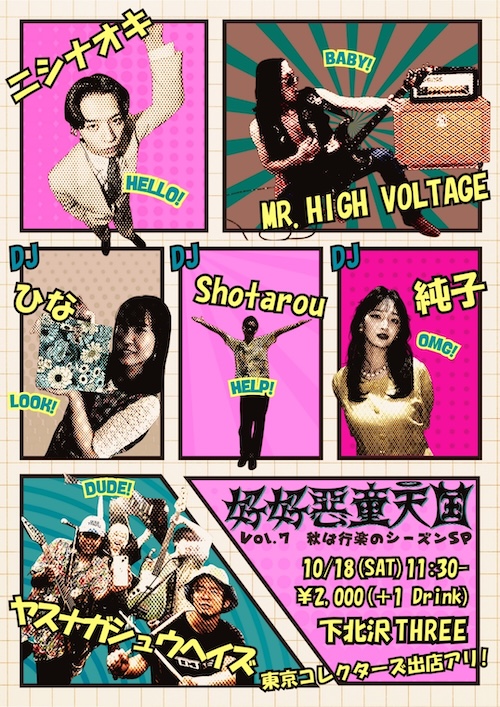 好好惡童天国 vol.7 イベント詳細 日付: 2025年10月18日 11:30 – 23:00 カテゴリ: お昼 2025年10月18日(土) ACT ニシナオキ MR. HIGH VOLTAGE ヤスナガシュウヘイズ DJ ひより Shotarou 純子 SHOP 東京コレクターズ OPEN & START11:30 DOOR¥2,000-(+1Drink ¥600-) 好好惡童天国 vol.7 秋は行楽のシーズンSP メールでのチケット予約はこちらからMAIL 友達にページをシェア フォローする?