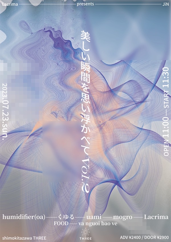 美しい瞬間を思い浮かべて Vol.2 イベント詳細 日付: 2023年7月23日 11:00 – 15:00 カテゴリ: お昼 2023年7月23日(日)お昼の公演 Lacrima × じん pre. 美しい瞬間を思い浮かべて Vol.2 OPEN11:00/START11:30 ADV¥2,400-/DOOR¥2,900-(+1D) 〔 予約フォーム 〕 ACT Lacrima uami mogro くゆる humidifier(O.A.) ↓コチラからのチケット予約は受け付けておりません。 メールでのチケット予約はこちらからMAIL
