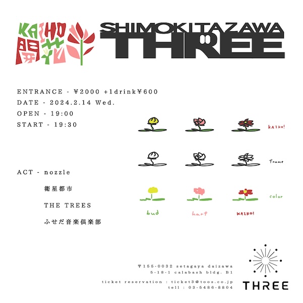 開花-KAIHO- イベント詳細 日付: 2024年2月14日 19:00 – 23:00 カテゴリ: 平日 2024年2月14日(水) 開花-KAIHO- OPEN19:00/START19:30 TICKET¥2,000-(+1D) ACT nozzle 衛星都市 THE TREES ふせだ音楽倶楽部 メールでのチケット予約はこちらからMAIL 友達にページをシェア フォローする?