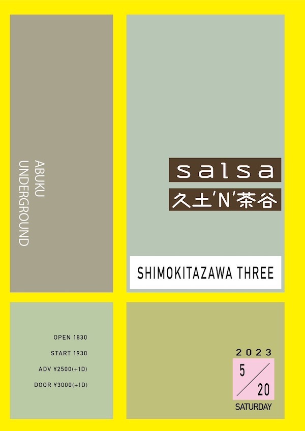 ABUKU UNDERGROUND イベント詳細 日付: 2023年5月20日 18:30 – 23:00 カテゴリ: 土曜日 2023年5月20日(土) ABUKU UNDERGROUND OPEN18:30/START19:30 ADV¥2,500-/DOOR¥3,000-(+1D) ACT salsa 久土’N’茶谷 メールでのチケット予約はこちらからMAIL