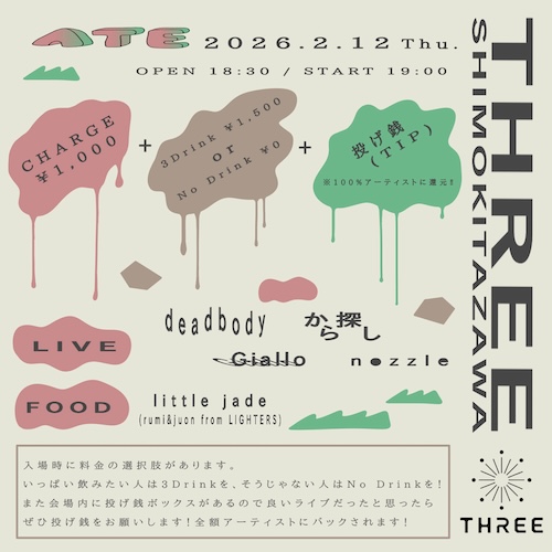 Charge¥1,000-(No Drink)or¥2,500-(3Drink付き)