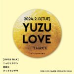 2024年2月13日(火) YUZU LOVE OPEN & START19:00 charge¥1,500-(w/1D) ※オープンマイクあり(飛び込み歓迎) LIVE&TALK こっけとカリン 島崎大 クッ…