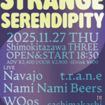 2025年11月27日(木) LIVE Navajo t.r.a.n.e Nami Nami Beers WOos DJ 傷心 sachimakashi OPEN & START18:30 ADV¥2,400-/DOOR…
