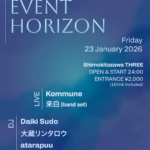 2026年1月23日(金)深夜 ACT Kommune 来白(band set) DJ Daiki Sudo 大蔵リンタロウ atarapuu OPEN & START24:00 Entrance¥2,000-(with…