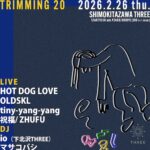 TRIMMING 20 2026年2月26日 19:00 – 23:00 カテゴリ: 平日 2026年2月26日(木) ACT HOT DOG LOVE OLDSKL tiny-yang-yang 祝福/ZHUFU OPEN & START19:00 ADV¥2,400-/DOOR¥2,900-(+1Drink…