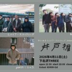 井戸掘り vol.1 2026年4月11日 12:30 – 15:00 カテゴリ: お昼 2026年4月11日(土) ACT Willy Mo エルモア・スコッティーズ ニャホ(バンドセット) OPEN12:30/START13:00 TIKCET¥2,400-(+1Drink ¥600-) 井戸掘り vol…