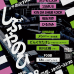 しぶやのひ 2026年4月28日 19:00 – 23:00 カテゴリ: 平日 2026年4月28日(火) ACT おかもとえみ 15MUS KIN DA SHER ROCK 福島清香 ひるのみ OWARAI メンバー(吉本興業) どんぐりたけし(ケイダッシュステージ) 前川正樹(フリー) FOOD…