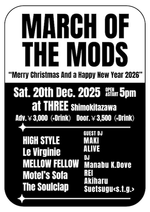 ADV¥3,000-DOOR¥3,500-(+1Drink ¥600-)