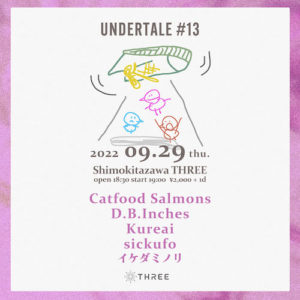 UNDERTALE #12 イベント詳細 日付: 2022年9月29日 18:30 – 23:00 カテゴリ: 平日 2022年9月29日(木) UNDERTALE #12 OPEN18:30/START19:00 ADV & DOOR¥2,000-(+1D) ACT Catfood Salmons D.B.Inches Kureai sickufo イケダミノリ メールでのチケット予約はこちらからMAIL 友達にページをシェア フォローする?
